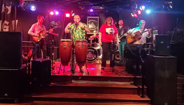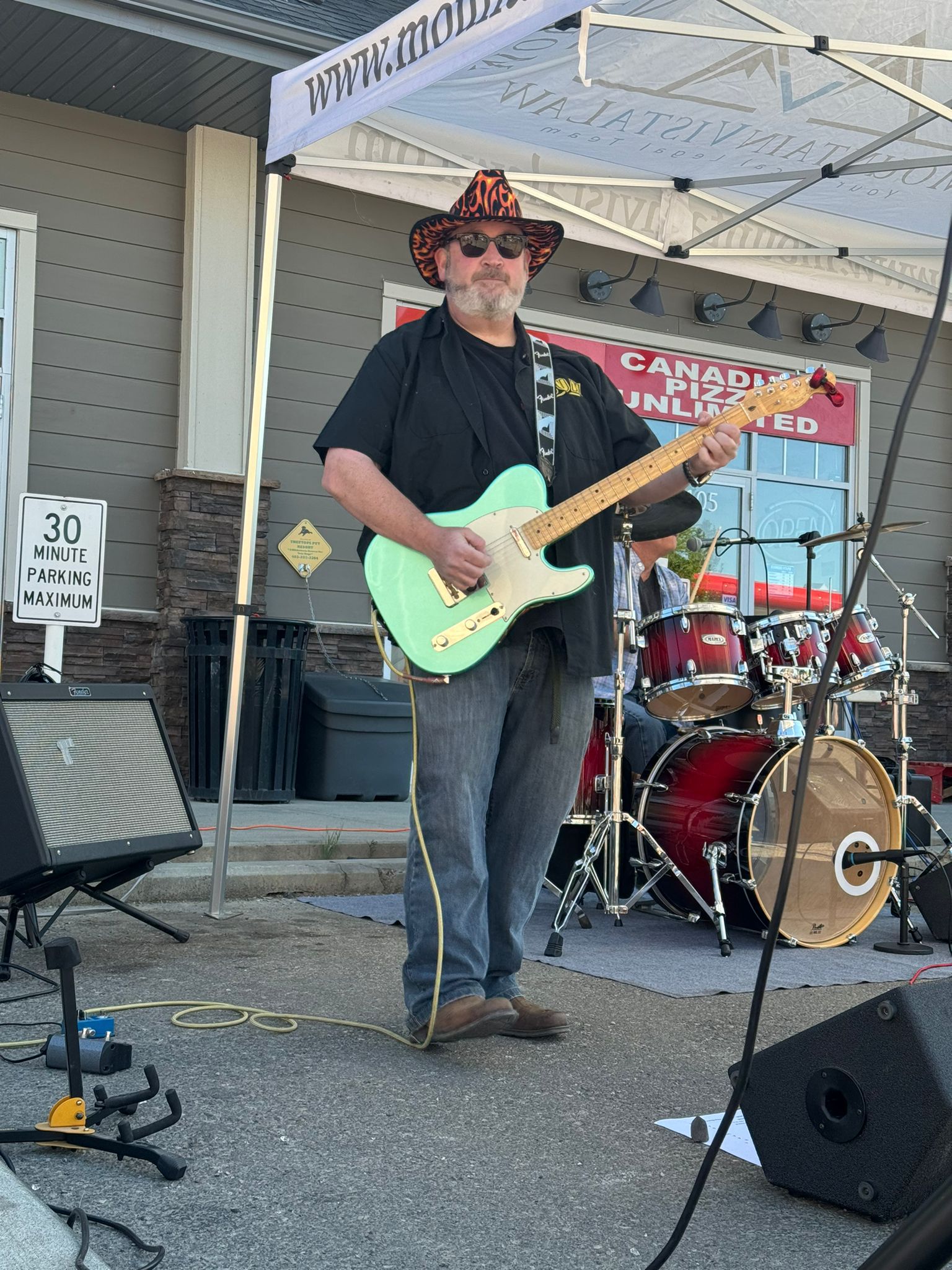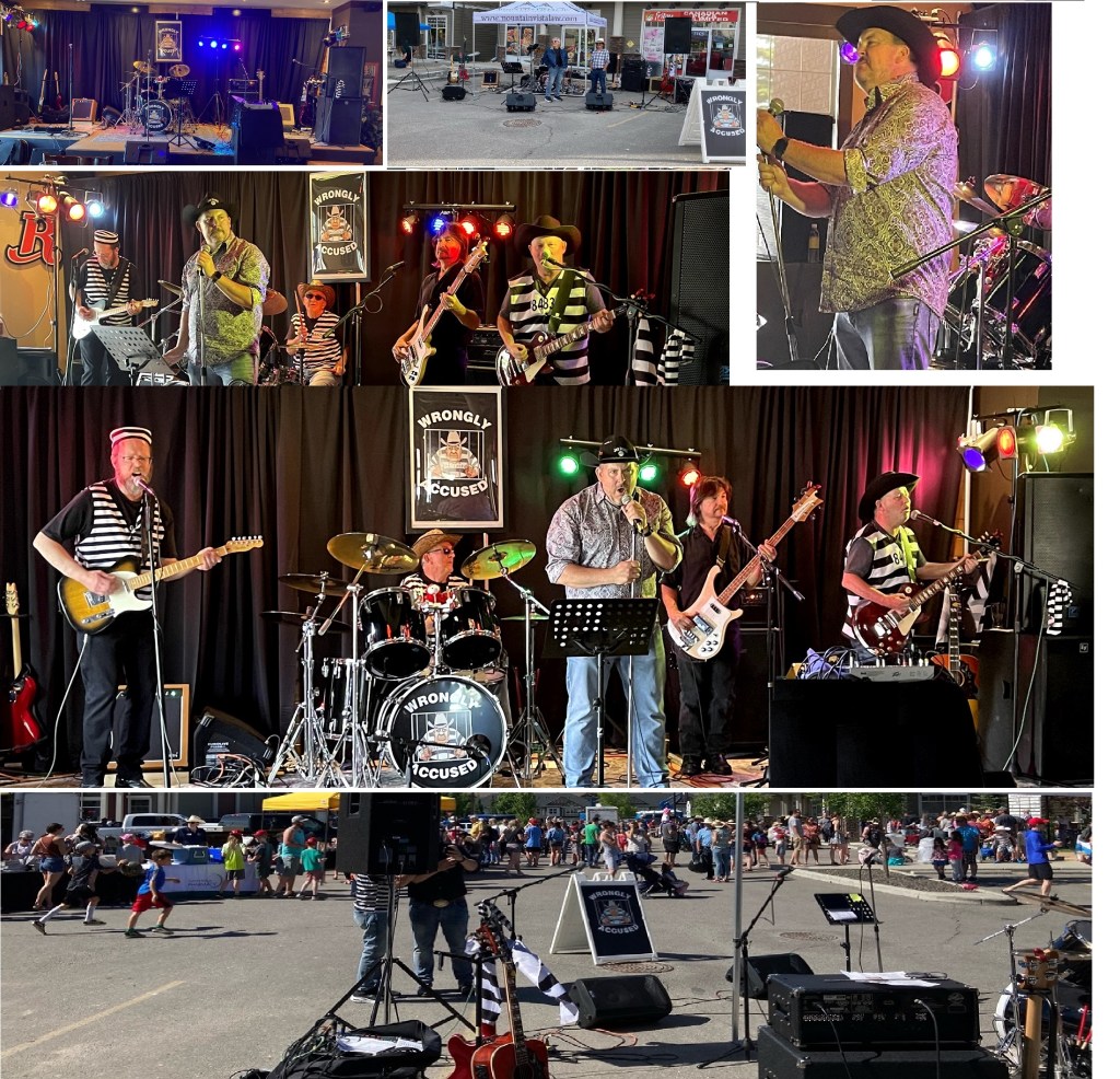 6am setup NOT a musician’s favourite time 2500 people for a Stampede Breakfast hosted by the Manchester complex Manchester Blazing Boots dancers – Wrongly Accused loves dancers!!!Manchester Blazing BootsMayor Nenshi making a speech from the Wrongly Accused stageHas mayor Nenshi joined Wrongly Accused? Did Grant get lost in the crowd?? Nooooooo!!!
